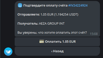 После того как вы нажмёте "Оплатить" ваш браузер автоматически откроет переписку с CryptoBot в Telegram: