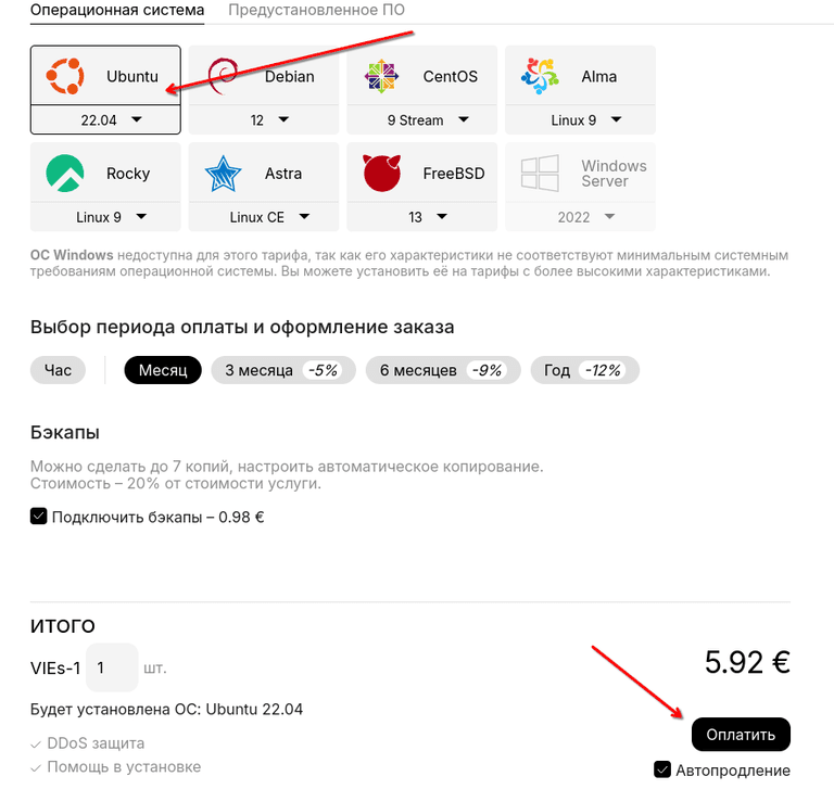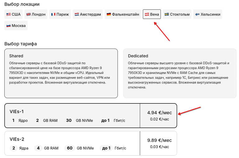 Для начала создадим сервер на OS Ubuntu 22.04 для развертывания на нем Сonduwuit. В нашем случае используется сервер тарифа VIEs-1 в Вене.