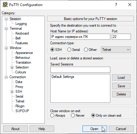Порядок действий для подключения к VDS/VPS Linux по SSH (Putty)