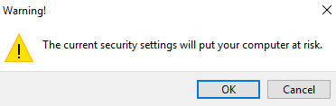 Если попробовать скачать файл, то выскачет сообщение о том, что настройки безопасности не позволяют совершить данное действие, нажимаем ОК.