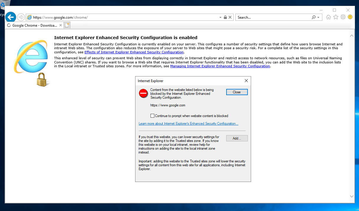 Наверняка многие сталкивались с проблемой, что стандартный установленный браузер Internet Explorer на Windows Server не позволяет скачать нужный файл, давайте исправим!
