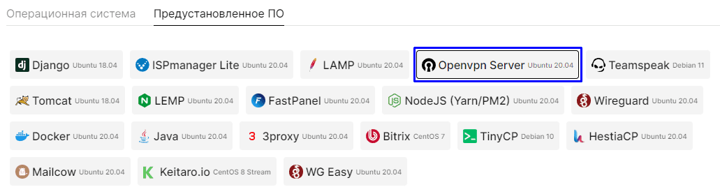 Покупка необходимого тарифа с предустановленным OpenVPN