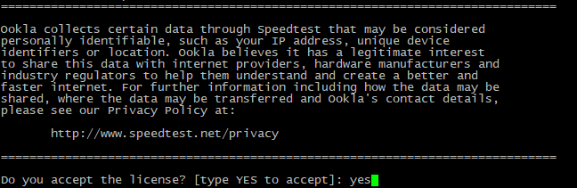 speedtest --server-id 53738Вводим команду и принимаем лицензию.