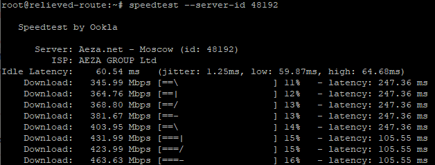 Теперь мы можем использовать простую команду для проверки скорости сети: До серверов Москвы: