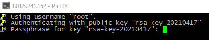 Для большей безопасности вы можете дважды указать второй «приватный» пароль, введя его в строке «Key passphrase». Он будет требоваться при каждом подключении к серверу. Сохраним его так же в удобное место.