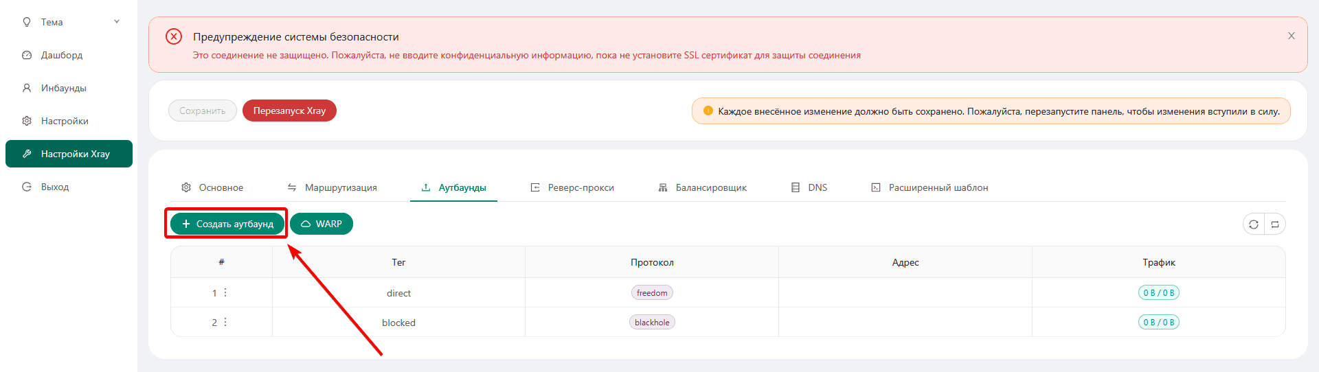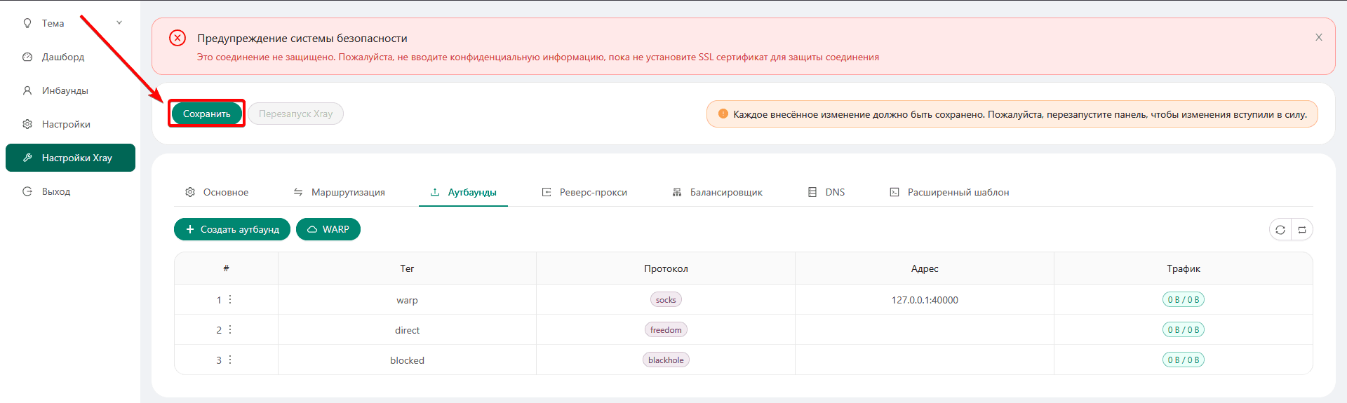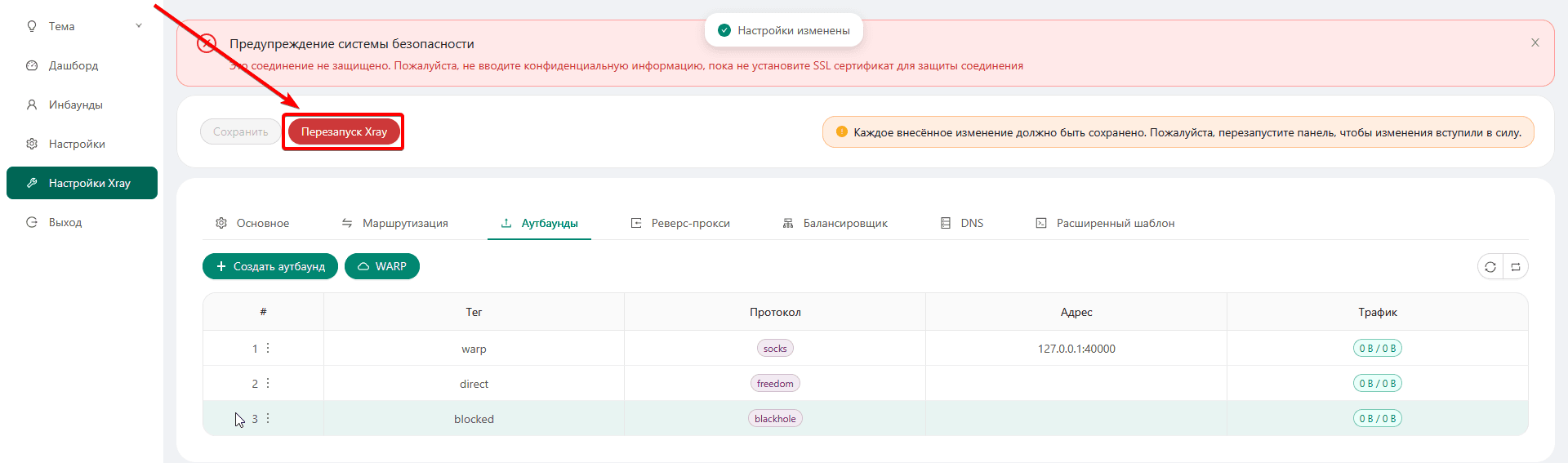 Настройка WARP в 3x-ui