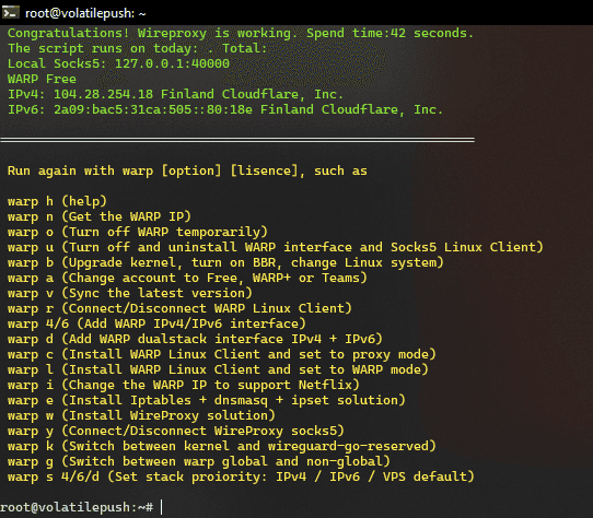 Для установки WARP введите следующие команды: